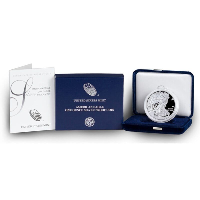 1oz Proof American Silver Eagle Coin in Box w/COA โ Mixed Year